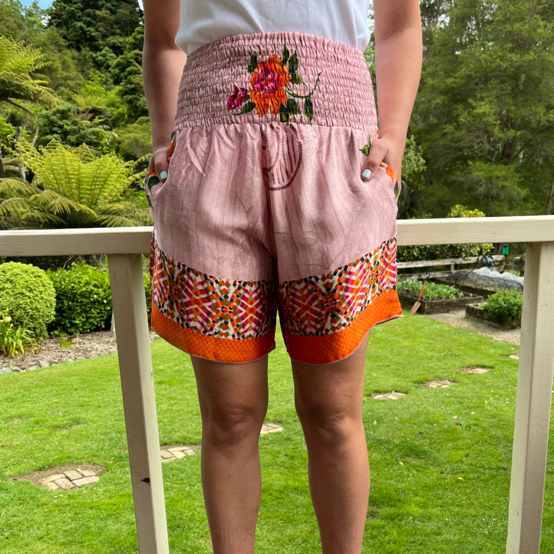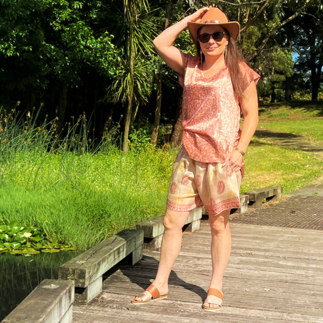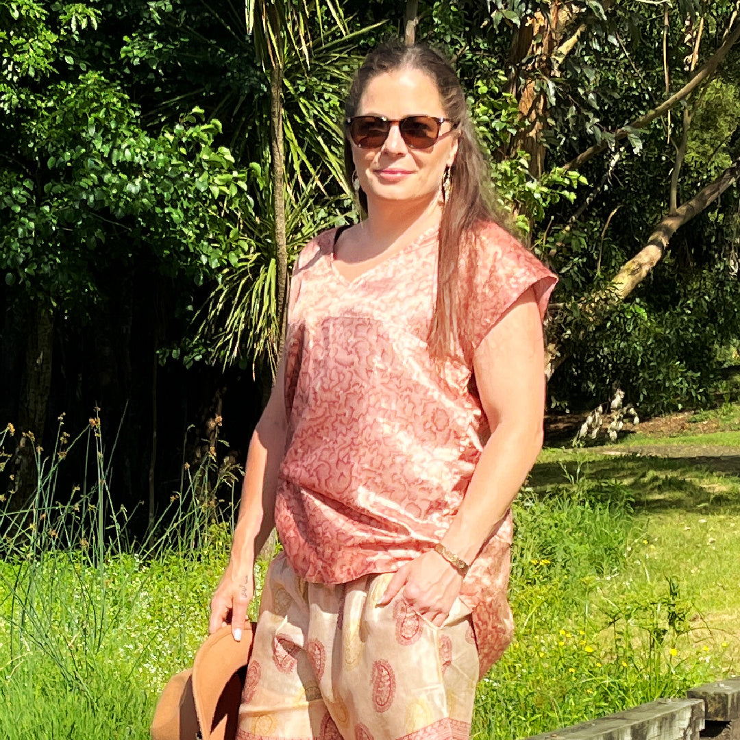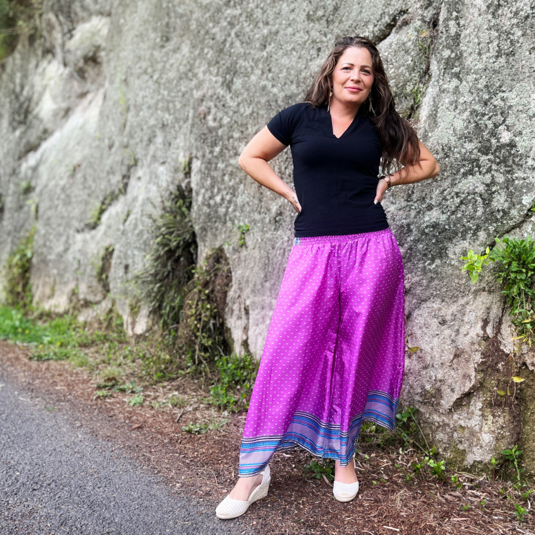 Tops, bottoms, skirts, dresses, kimonos, sleepwear, gifts and accessories crafted from recycled silk blend saris. Most items are unique!