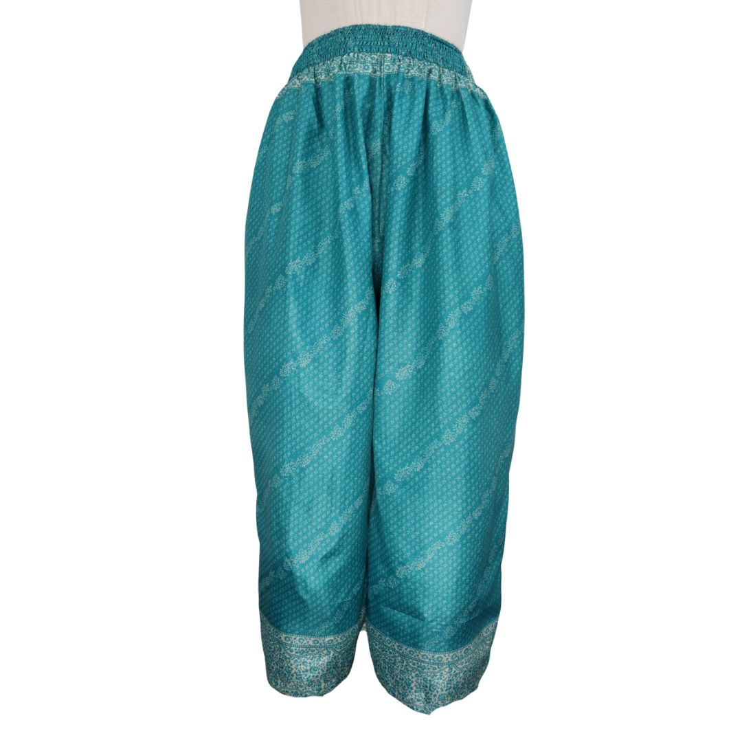 Traditionally Saris are often flamboyant and brightly coloured, frequently embroidered, and made from silk, cotton, or, in recent years, synthetic cloth such as viscose and polyester. We use retro Sari cloth in the majority of our garments so silk is a high component. It is not uncommon to find chiffon or georgette added into the mix which is why we refer to the skirts as a silk blend. We also use 'end of roll' sari fabrics.