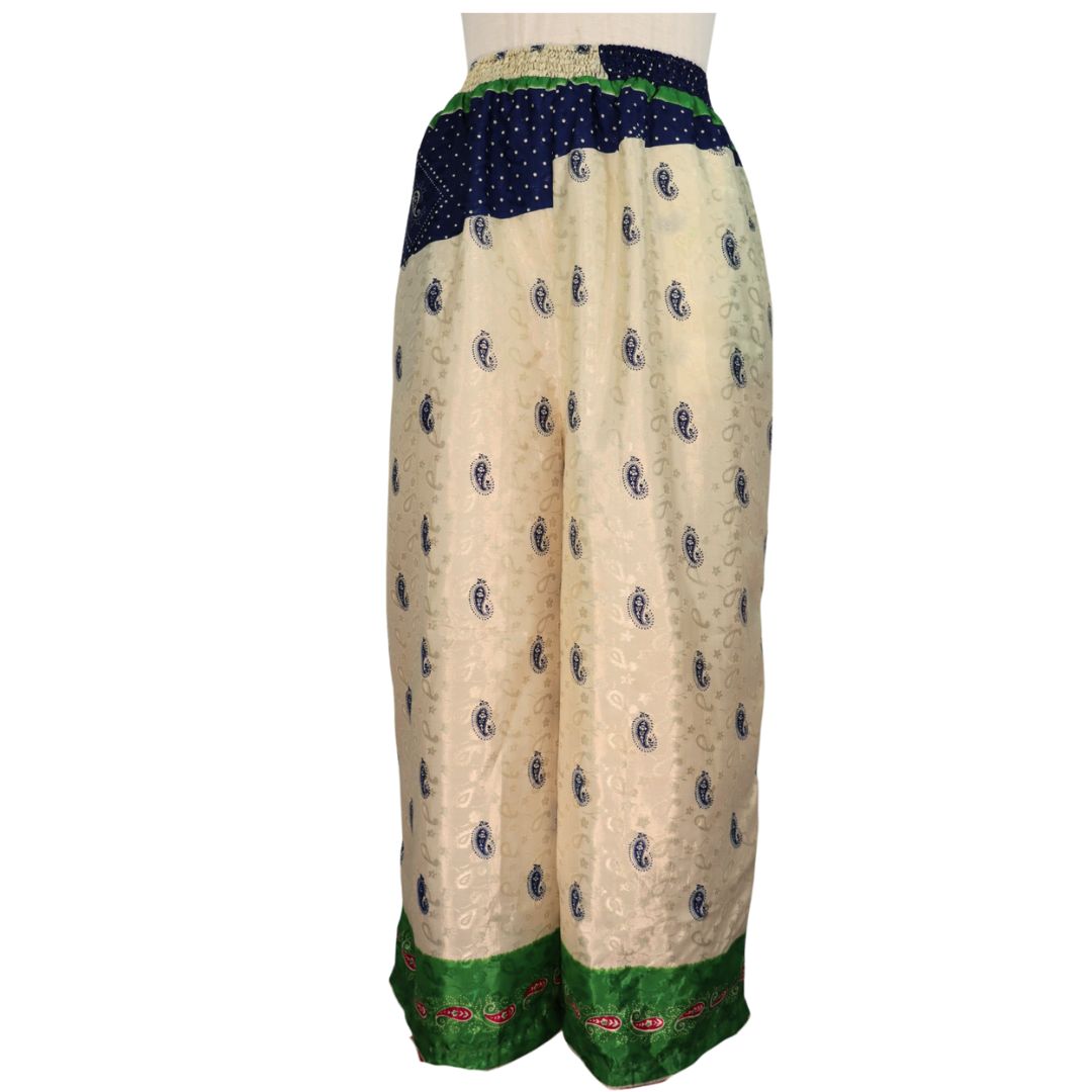 Traditionally Saris are often flamboyant and brightly coloured, frequently embroidered, and made from silk, cotton, or, in recent years, synthetic cloth such as viscose and polyester. We use retro Sari cloth in the majority of our garments so silk is a high component. It is not uncommon to find chiffon or georgette added into the mix which is why we refer to the skirts as a silk blend. We also use 'end of roll' sari fabrics.