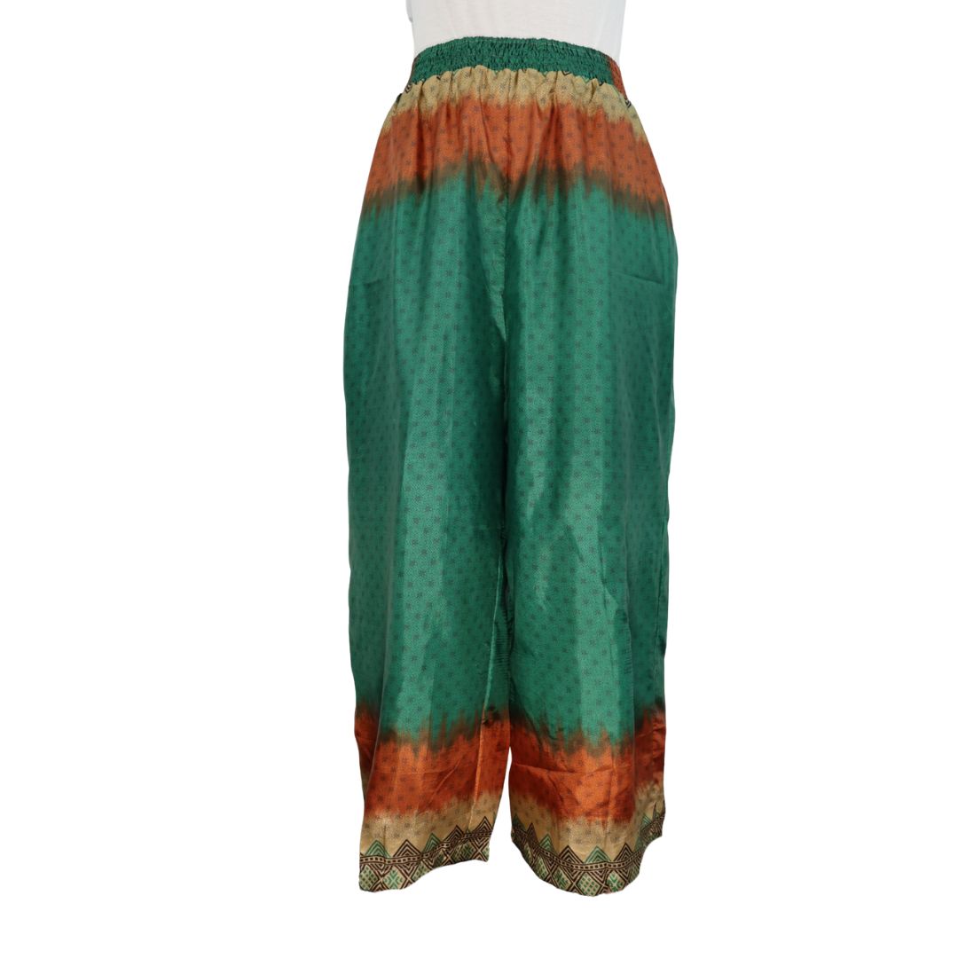 Traditionally Saris are often flamboyant and brightly coloured, frequently embroidered, and made from silk, cotton, or, in recent years, synthetic cloth such as viscose and polyester. We use retro Sari cloth in the majority of our garments so silk is a high component. It is not uncommon to find chiffon or georgette added into the mix which is why we refer to the skirts as a silk blend. We also use 'end of roll' sari fabrics.