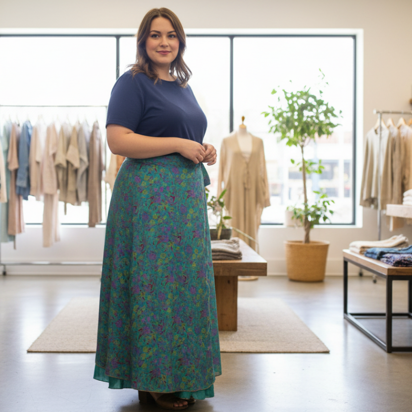 I love these skirts, the fabric wrap is generous and the fabrix feels luxurious. Thanks