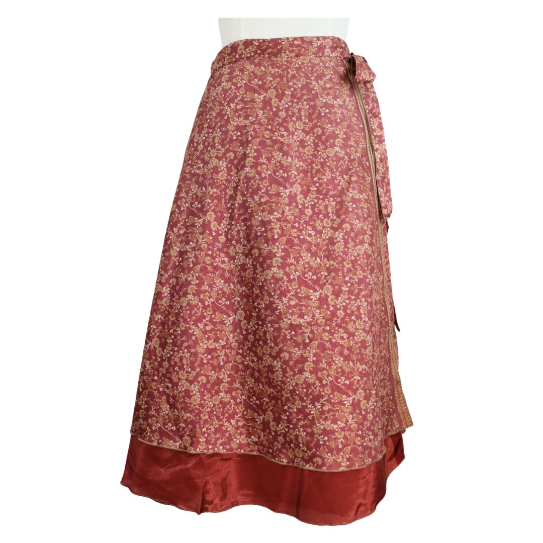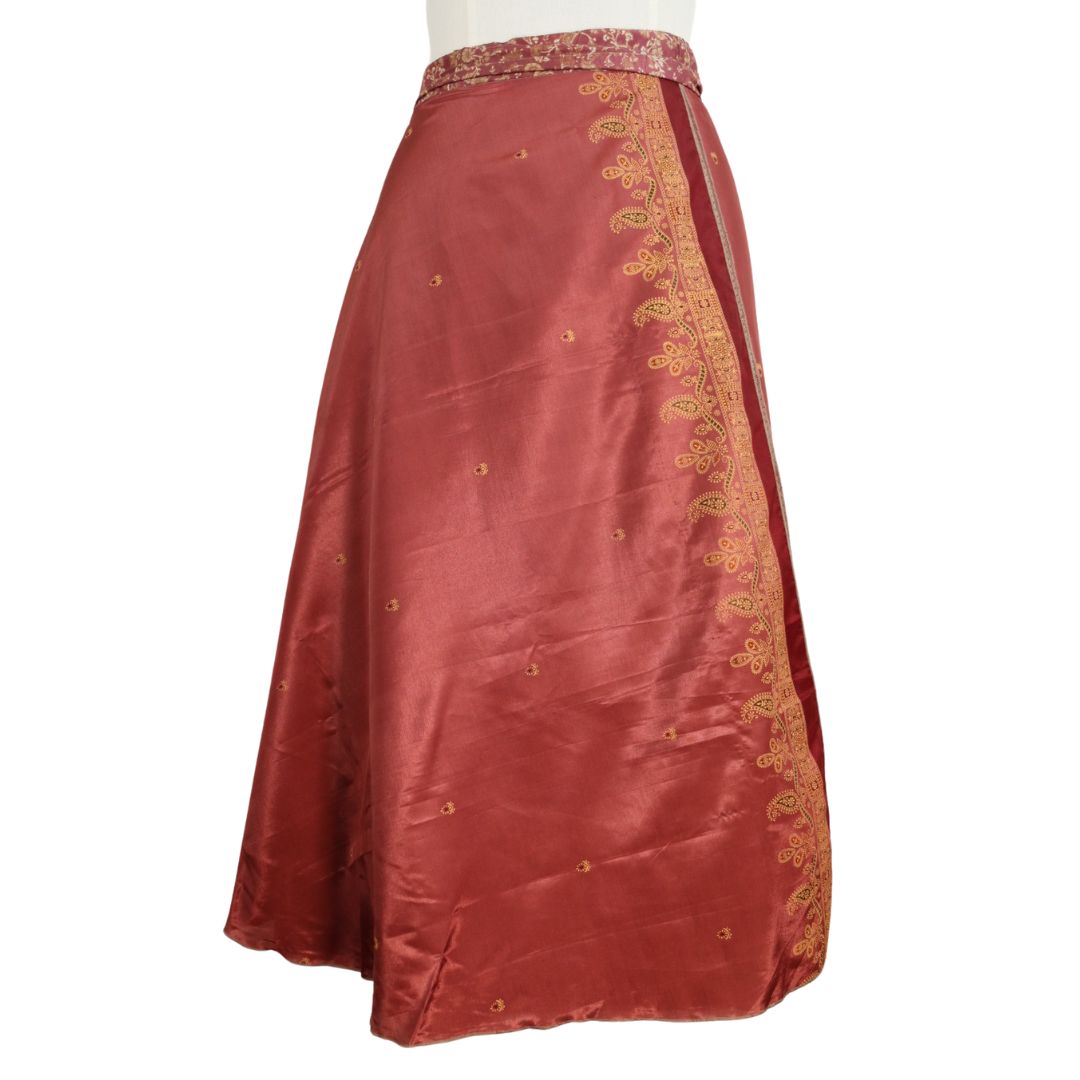 Traditionally Saris are often flamboyant and brightly coloured, frequently embroidered, and made from silk, cotton, or, in recent years, synthetic cloth such as viscose and polyester. We use retro Sari cloth in the majority of our garments so silk is a high component. It is not uncommon to find chiffon or georgette added into the mix which is why we refer to the skirts as a silk blend. We also use 'end of roll' sari fabrics.