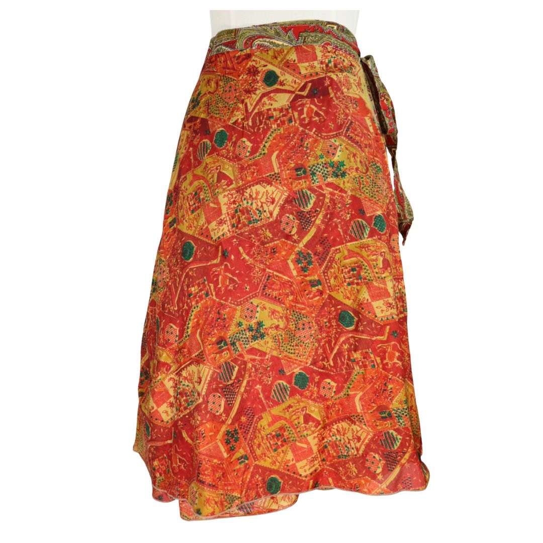 These sari wrap skirts are approximately 81 cms (32") in length so about the calf for many. The waist measures 152 cms (60") to include the wrap aspect plus the ties to fasten.