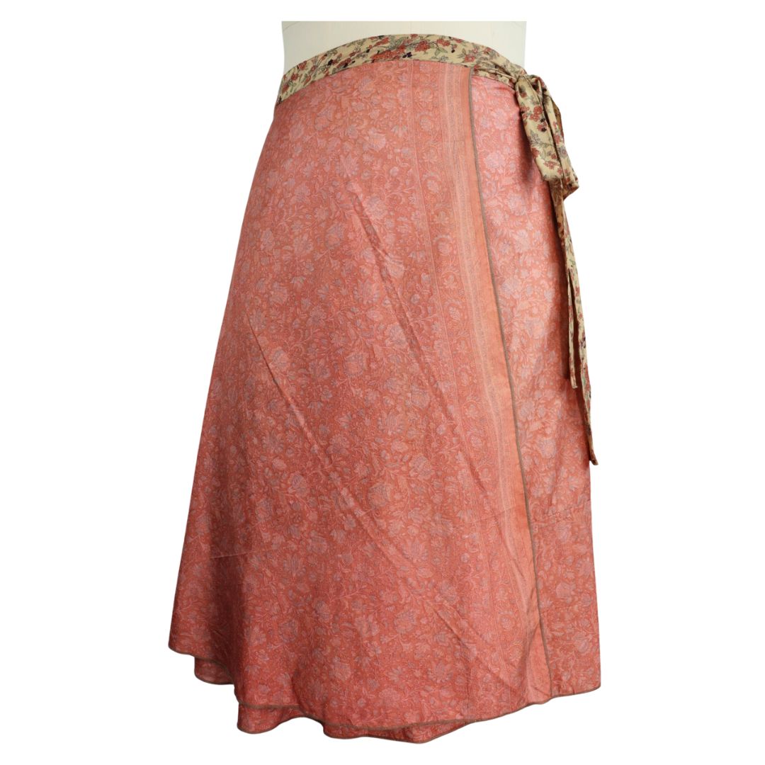 Traditionally Saris are often flamboyant and brightly coloured, frequently embroidered, and made from silk, cotton, or, in recent years, synthetic cloth such as viscose and polyester. We use retro Sari cloth in the majority of our garments so silk is a high component. It is not uncommon to find chiffon or georgette added into the mix which is why we refer to the skirts as a silk blend. We also use 'end of roll' sari fabrics.