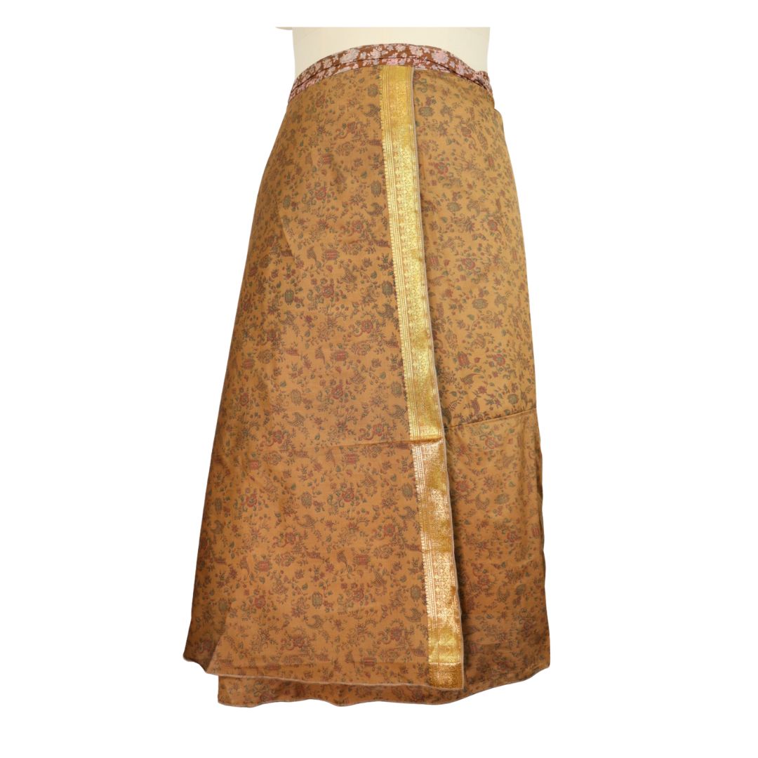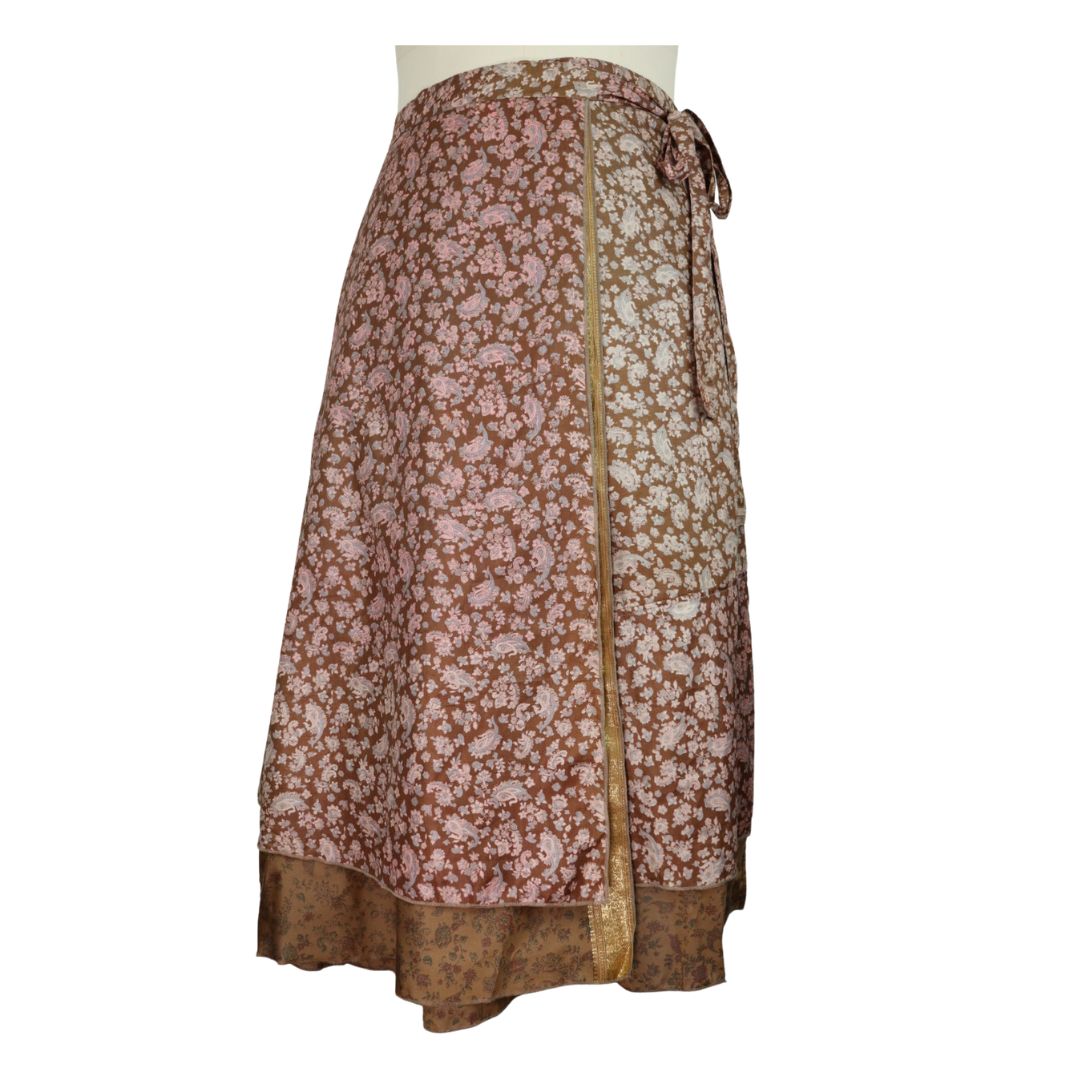 Traditionally Saris are often flamboyant and brightly coloured, frequently embroidered, and made from silk, cotton, or, in recent years, synthetic cloth such as viscose and polyester. We use retro Sari cloth in the majority of our garments so silk is a high component. It is not uncommon to find chiffon or georgette added into the mix which is why we refer to the skirts as a silk blend. We also use 'end of roll' sari fabrics.