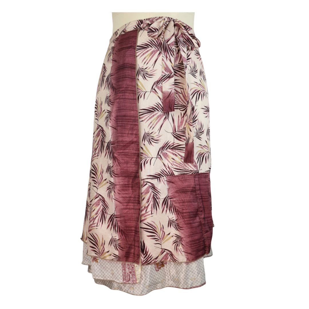 Traditionally Saris are often flamboyant and brightly coloured, frequently embroidered, and made from silk, cotton, or, in recent years, synthetic cloth such as viscose and polyester. We use retro Sari cloth in the majority of our garments so silk is a high component. It is not uncommon to find chiffon or georgette added into the mix which is why we refer to the skirts as a silk blend. We also use 'end of roll' sari fabrics.