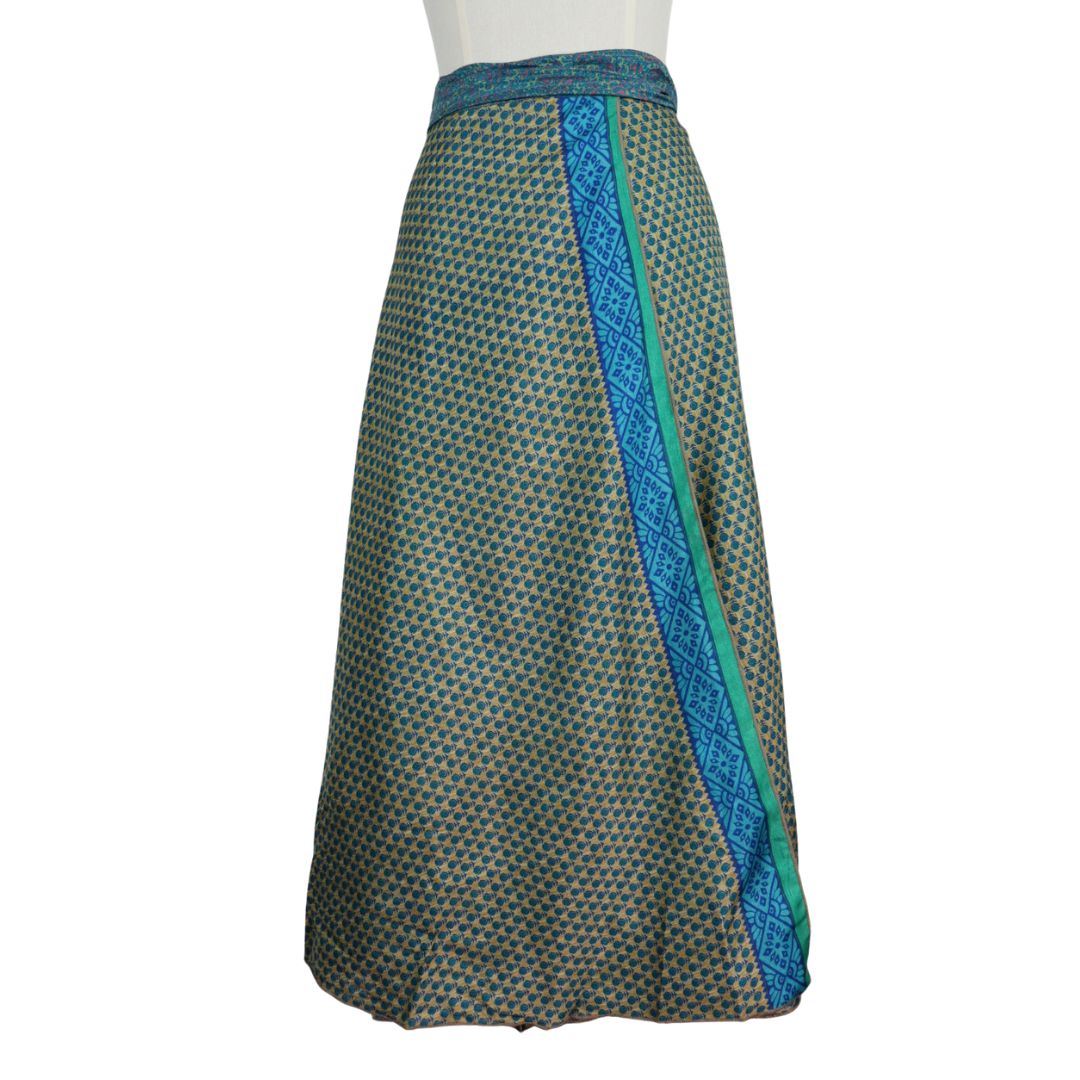 Traditionally Saris are often flamboyant and brightly coloured, frequently embroidered, and made from silk, cotton, or, in recent years, synthetic cloth such as viscose and polyester. We use retro Sari cloth in the majority of our garments so silk is a high component. It is not uncommon to find chiffon or georgette added into the mix which is why we refer to the skirts as a silk blend. We also use 'end of roll' sari fabrics.