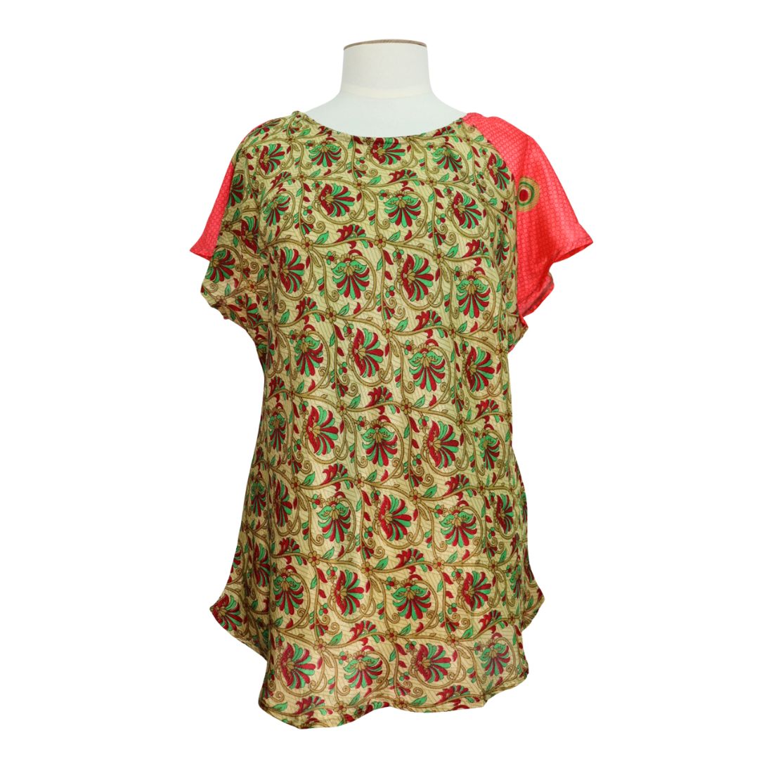 You'll receive this blouse. Since each one is lovingly hand made from an up-cycled silk blend sari, you may find tiny imperfections in the fabric.