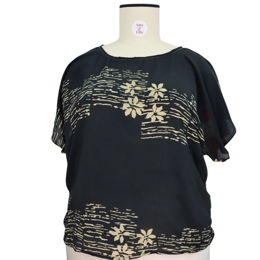 Batwing tops are very generous across the chest. As they sit on the waist at the front, again stick to your normal size. If you cross the size range, go bigger so the waist fits you still.