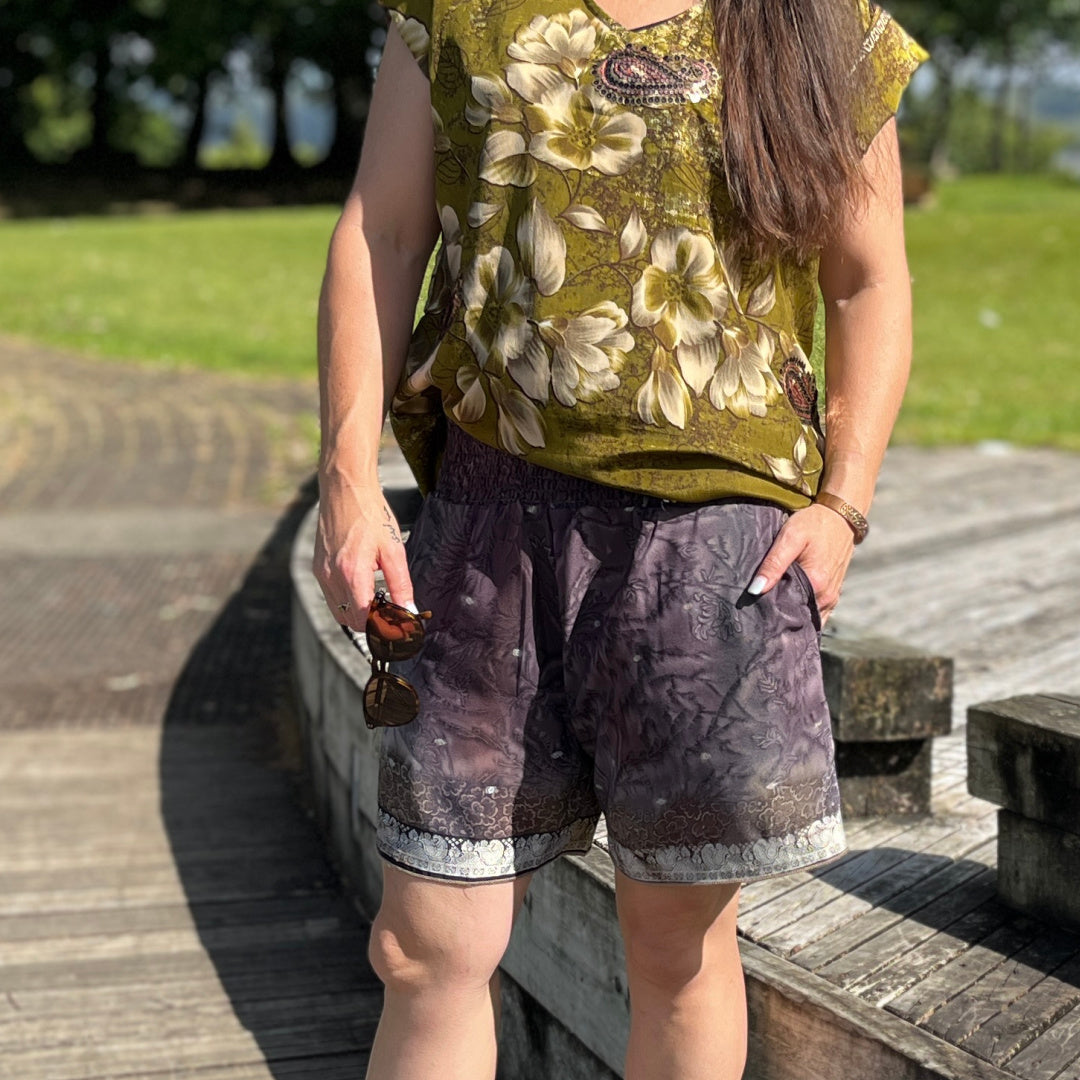 The perfect addition to your summer wardrobe. Stylish and lightweight, our shorts are also made from recycled saris. Great for on the beach, chilling out or as sleepwear with a T shirt.