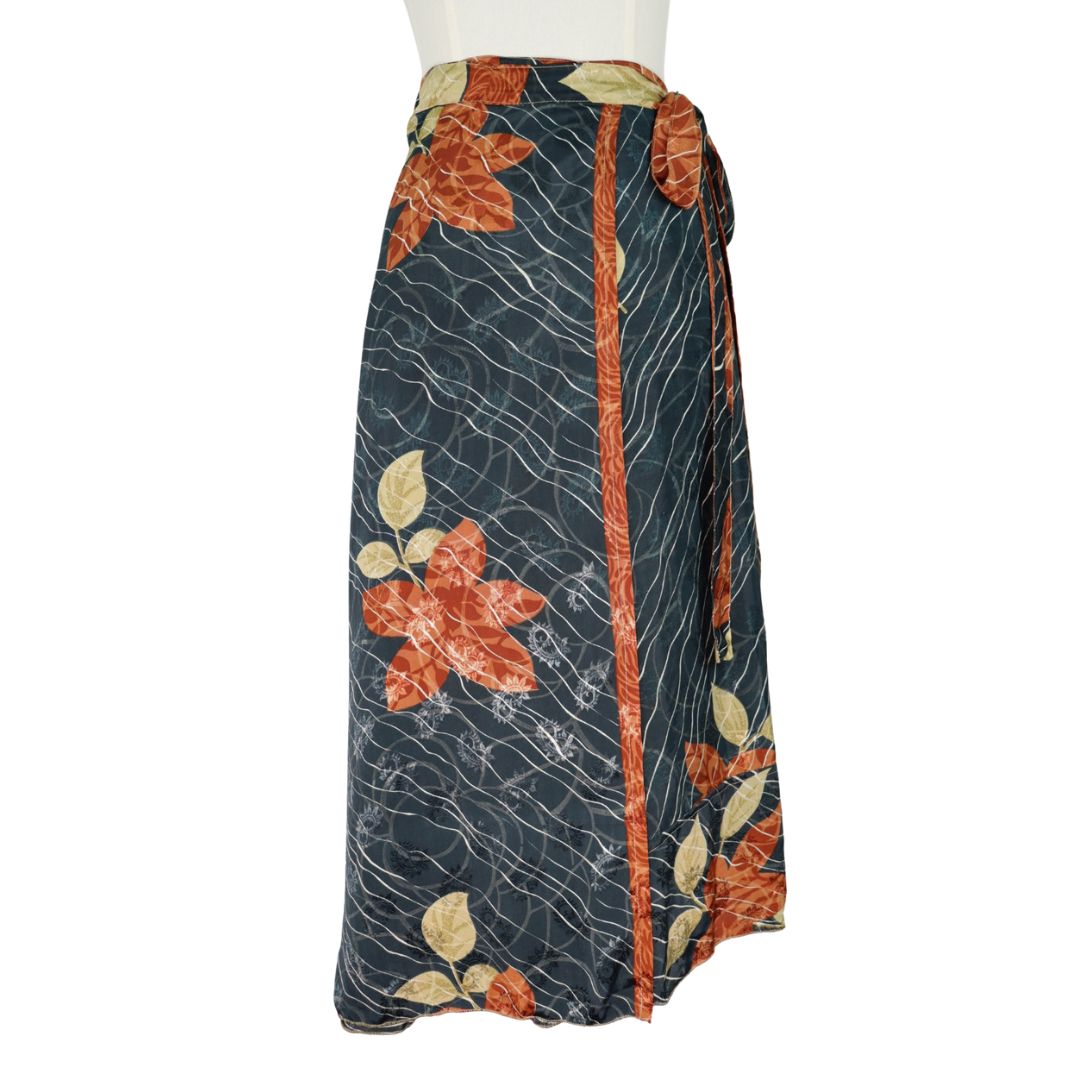 Since the pattern positioning on each skirt varies, you can wrap to either side, the front or back. The tie fastening allows flexibility around the waist and can also be tied to the front, back or side - your choice.