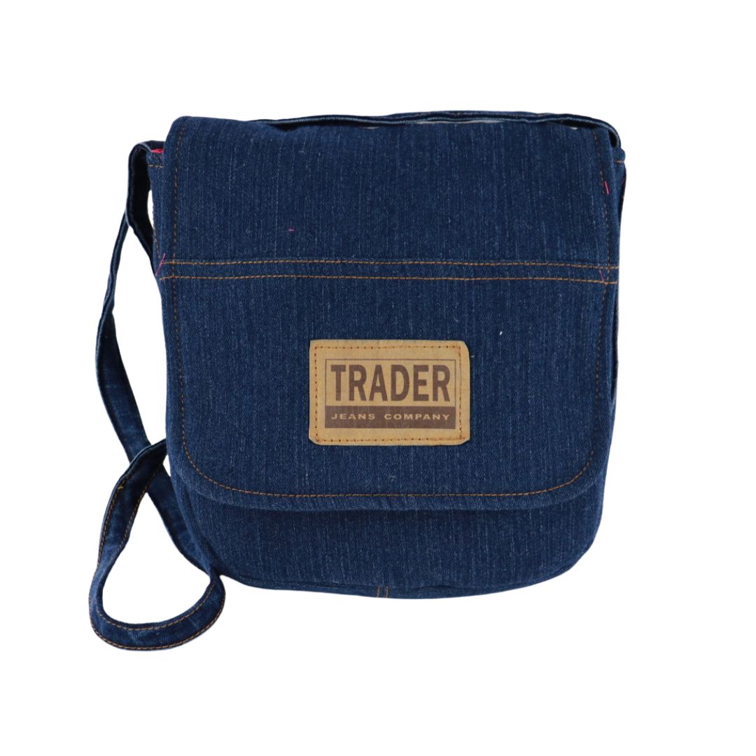 The approximate dimensions are L24cms x H26cms x W4cms. The strap is 97cms long. Each bag is lined with bright pink cotton poplin. There are internal pockets on both sides. Velcro fastens the front flap.