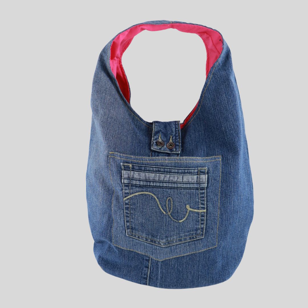 We have taken unwanted denim jeans and recycled them into bags!