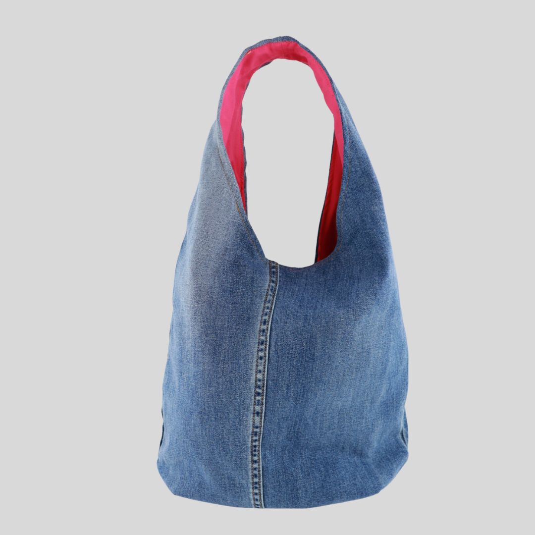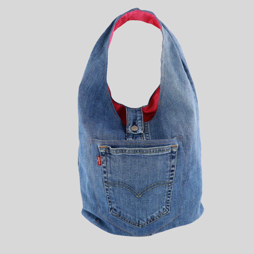 Made from Levi Strauss jeans. The approximate dimensions are L40cms x H35cms. Each bag is lined with pink cotton poplin. There are internal pockets on both sides.