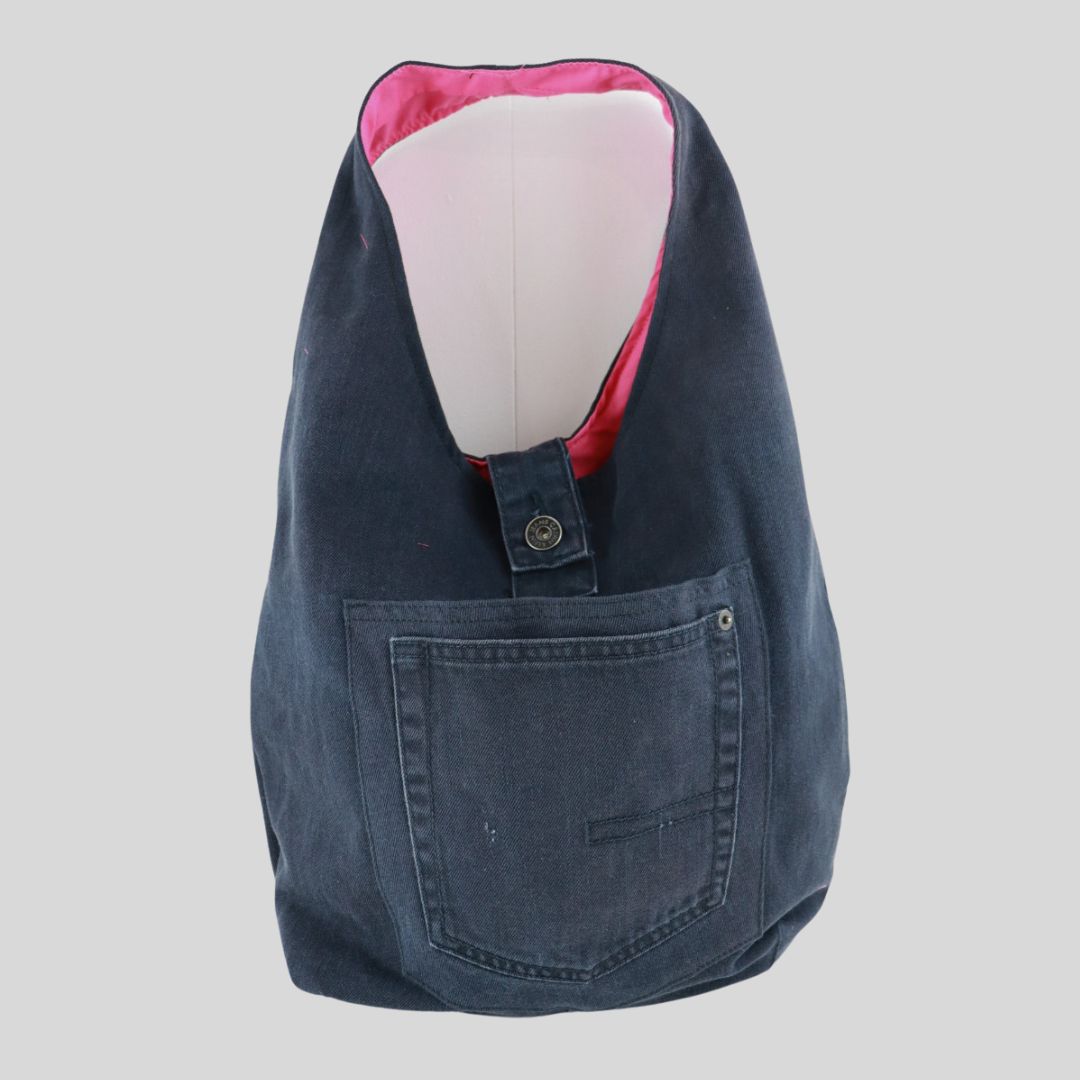 Made from Calvin Klein jeans. The approximate dimensions are L40cms x H35cms. Each bag is lined with pink cotton poplin. There are internal pockets on both sides.