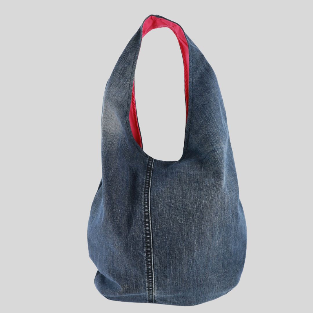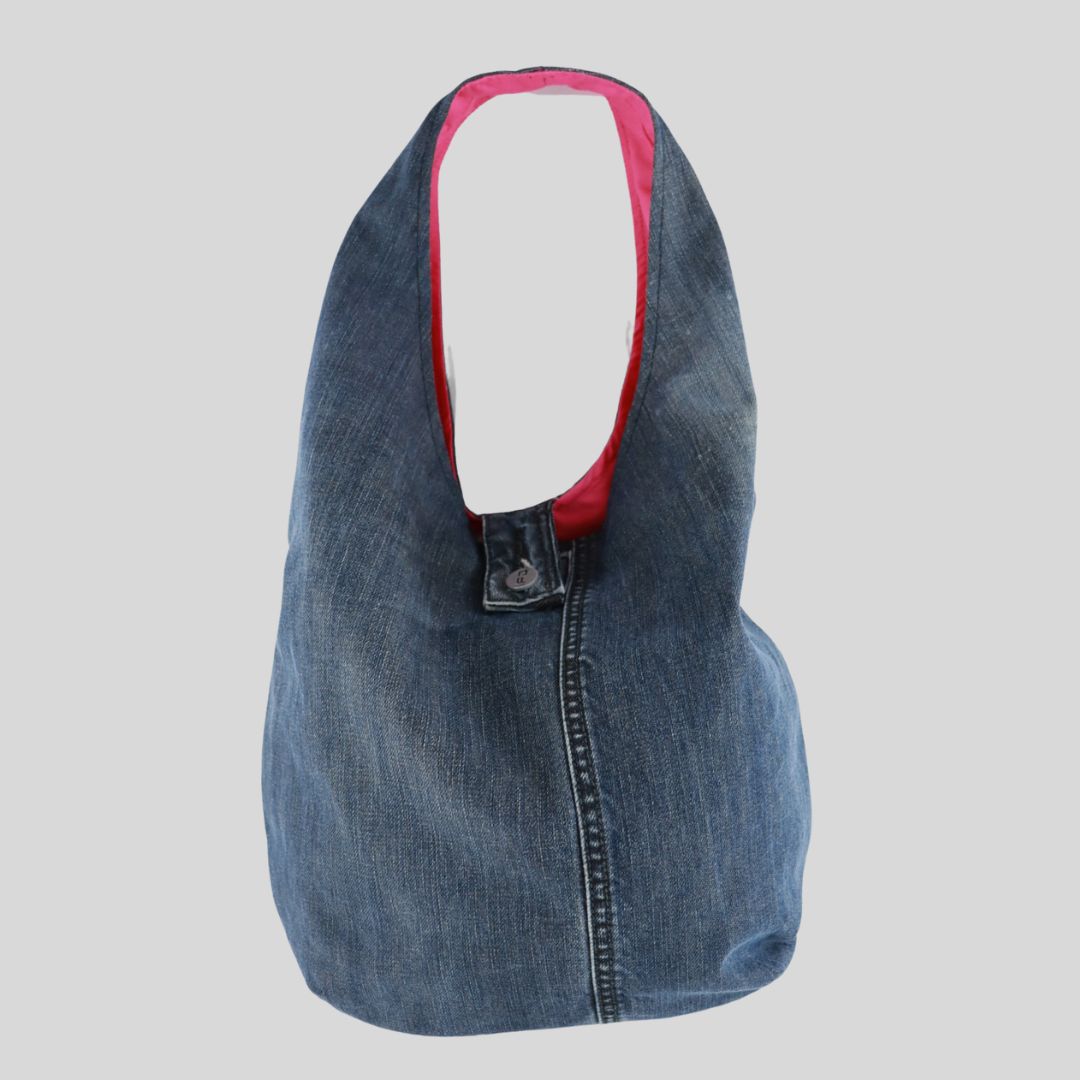 Made from jeans. The approximate dimensions are L40cms x H35cms. Each bag is lined with pink cotton poplin. There are internal pockets on both sides.