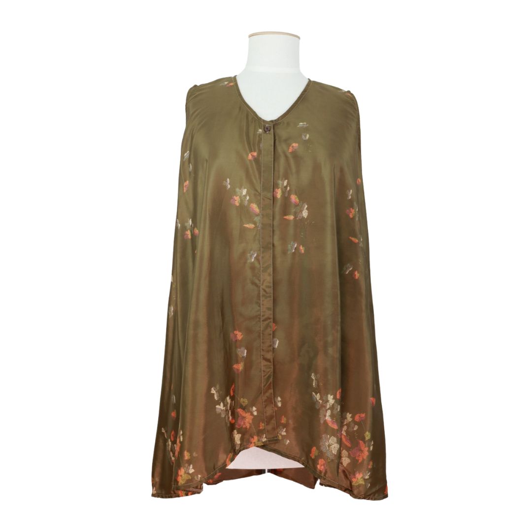 Add colour to your wardrobe with a unique piece to layer with. This sleeveless top / waistcoat has a single button to fasten it allowing the garment to float with you. Made from recycled saris.