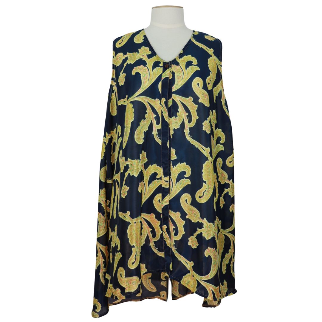 Add colour to your wardrobe with a unique piece to layer with. This sleeveless top / waistcoat has a single button to fasten it allowing the garment to float with you. Made from recycled saris.