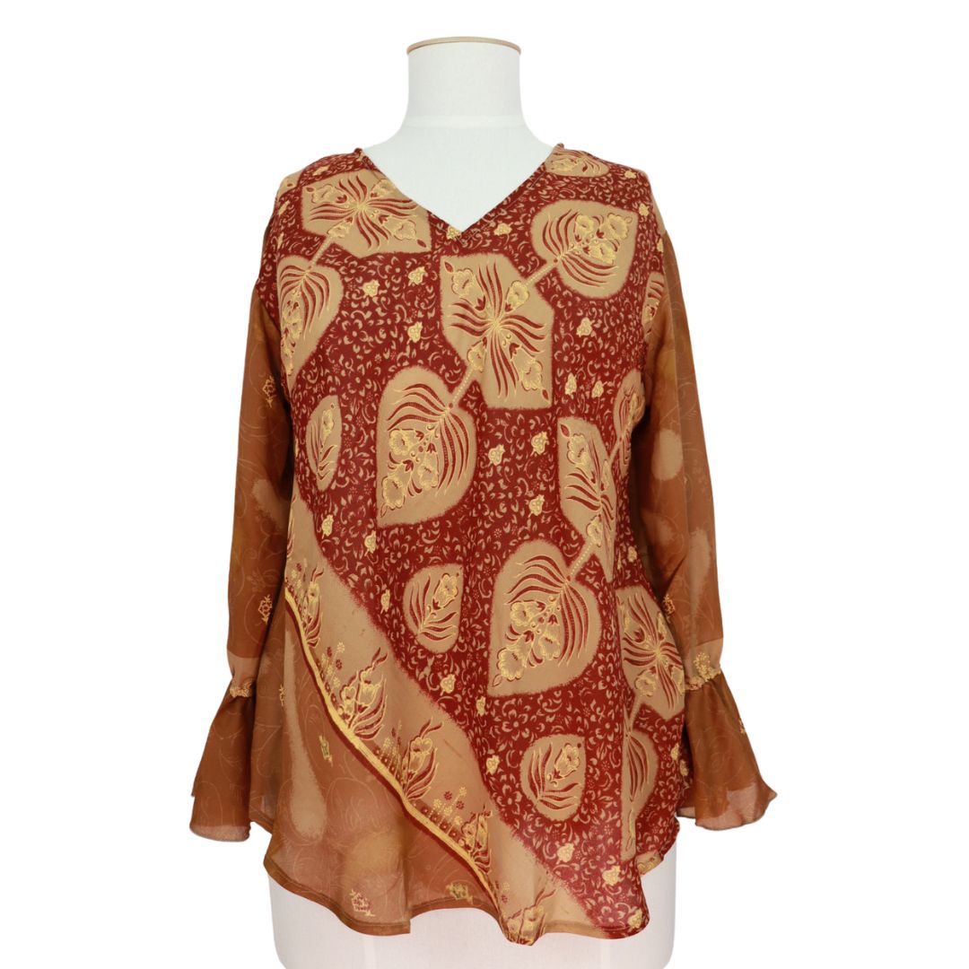 You'll receive this blouse. Since each one is lovingly hand made from an up-cycled silk blend sari, you may find tiny imperfections in the fabric.