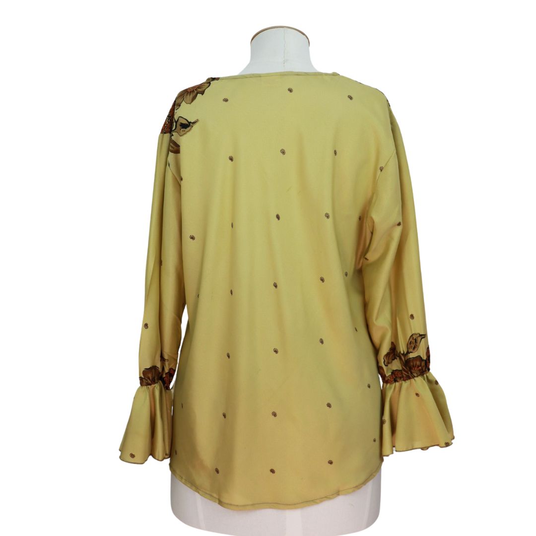 Lovely detail on cuff with the romantic ruffles, a lovely going out in evening blouse for that special look.
