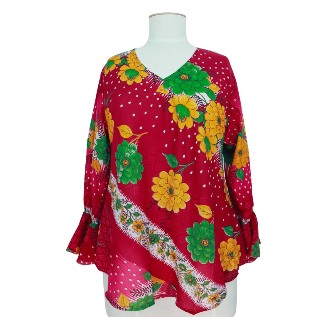 The blouse measures 63cms (25") flat across the chest. The length from the nape is about 73 cms (28”).