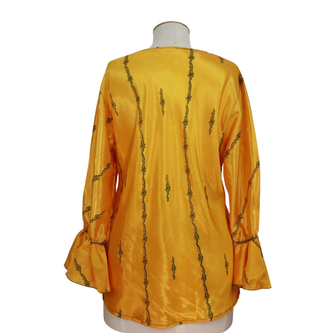 You'll receive this blouse. Since each one is lovingly hand made from an up-cycled silk blend sari, you may find tiny imperfections in the fabric.