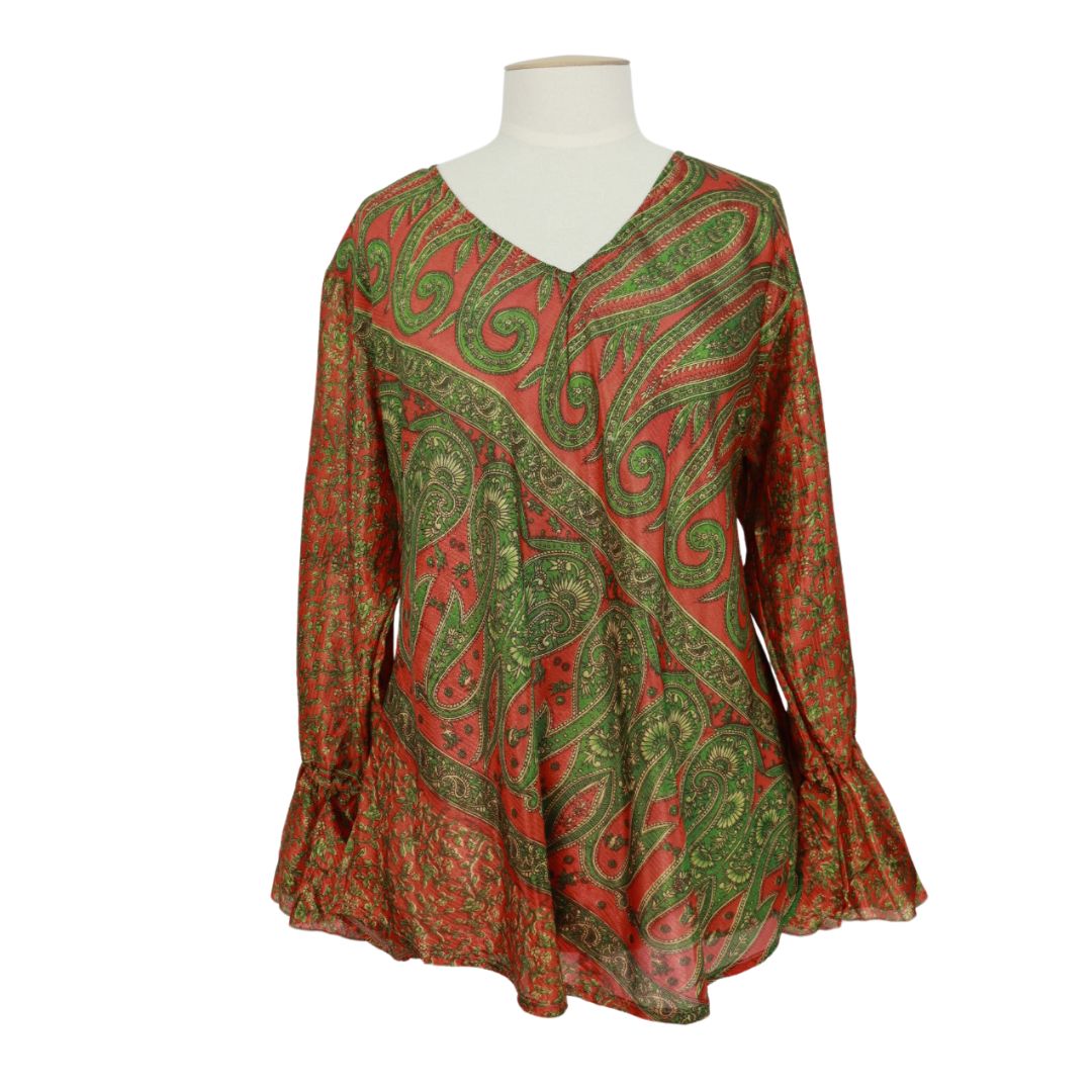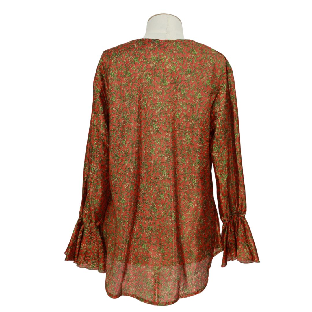 You'll receive this blouse. Since each one is lovingly hand made from an up-cycled silk blend sari, you may find tiny imperfections in the fabric.