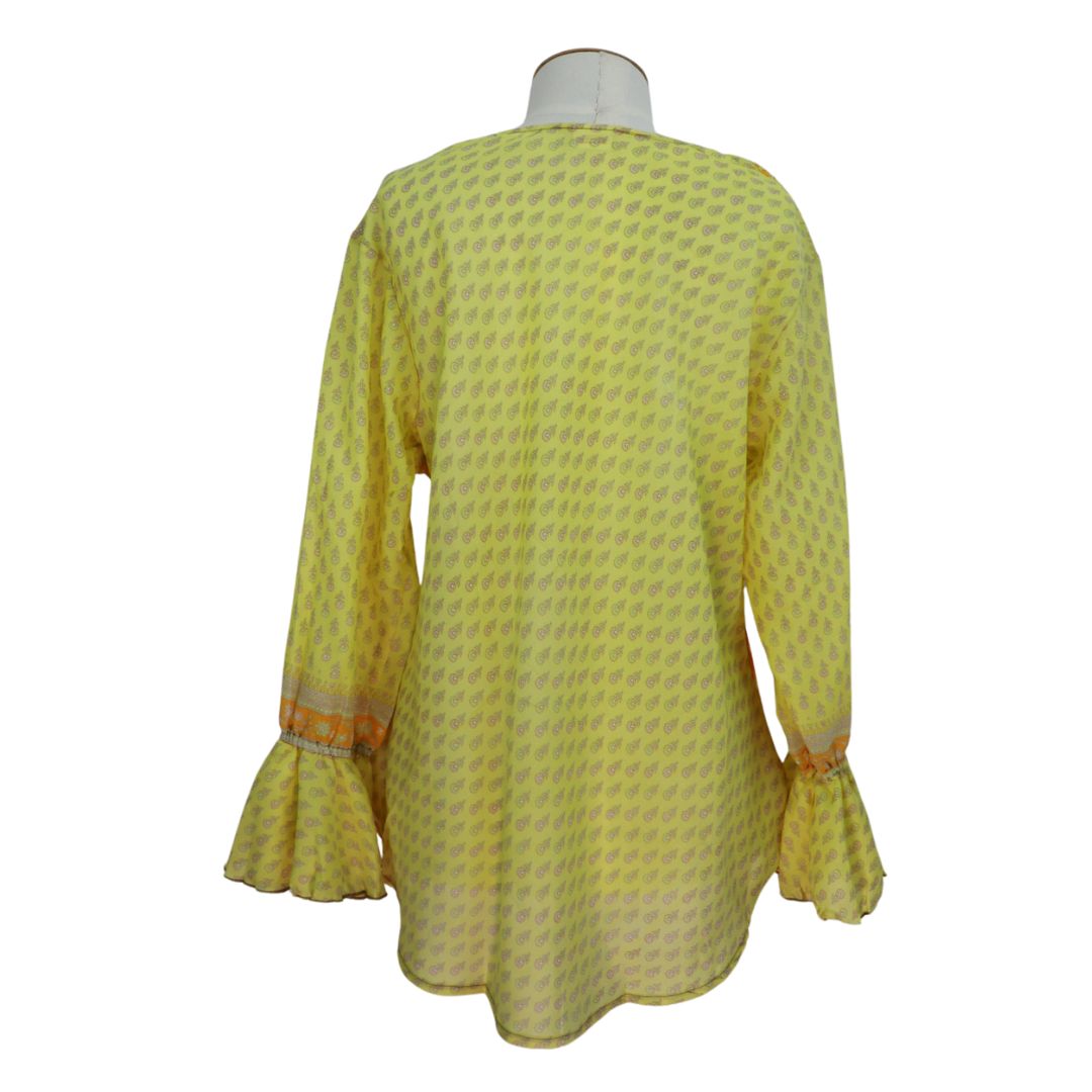 Since we cannot trace back the origin of each Sari we upcycle and each garment is unique (preventing batch testing), it’s impossible to say for sure what the actual fabric content is.