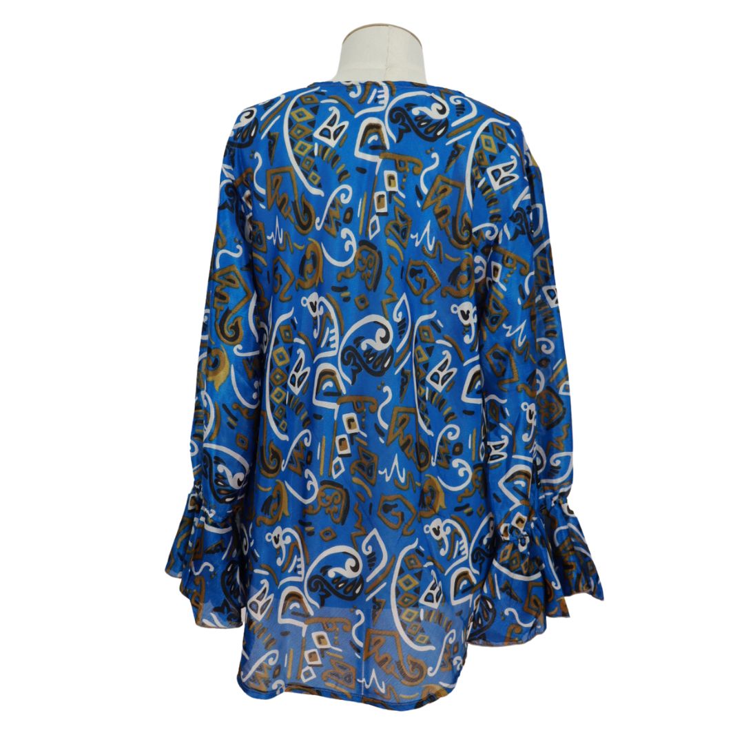 The blouse measures 59cms (23") flat across the chest. The length from the nape is about 72cms (28”).
