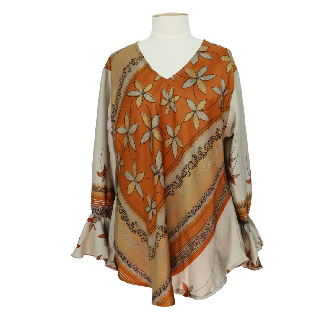 You'll receive this blouse. Since each one is lovingly hand made from an up-cycled silk blend sari, you may find tiny imperfections in the fabric.