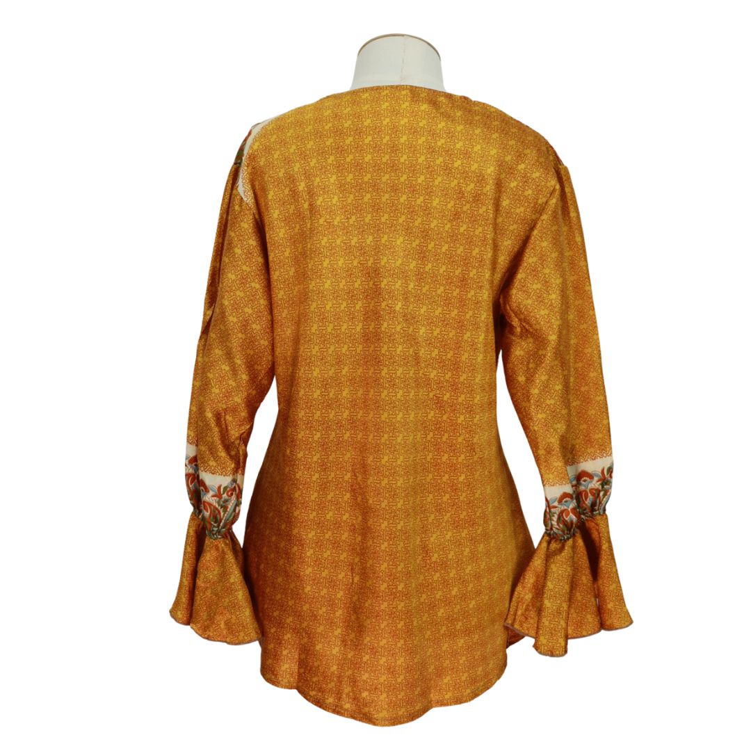 You'll receive this blouse. Since each one is lovingly hand made from an up-cycled silk blend sari, you may find tiny imperfections in the fabric.