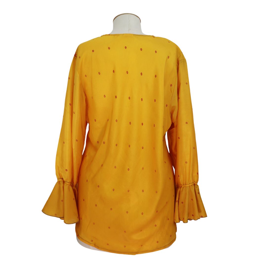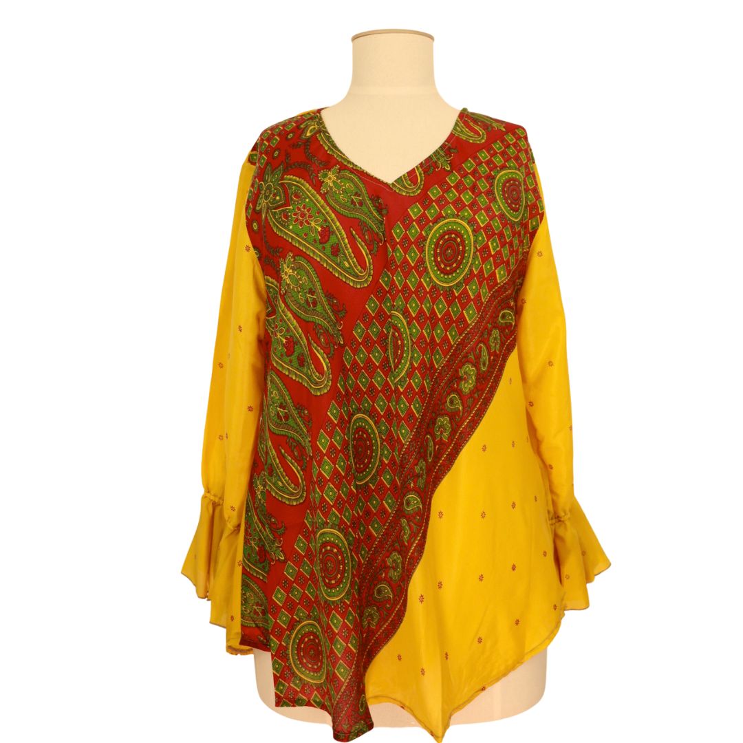 You'll receive this blouse. Since each one is lovingly hand made from an up-cycled silk blend sari, you may find tiny imperfections in the fabric.