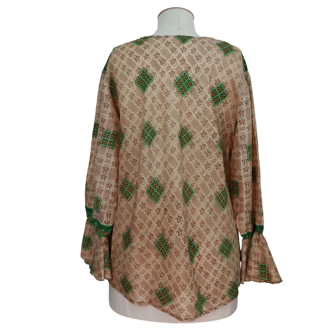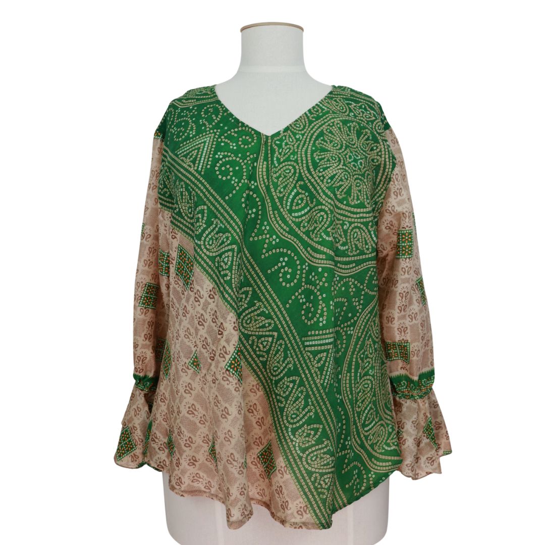 You'll receive this blouse. Since each one is lovingly hand made from an up-cycled silk blend sari, you may find tiny imperfections in the fabric.