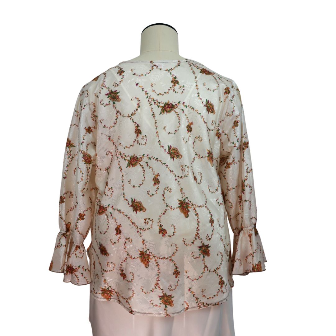 Lovely detail on cuff with the romantic ruffles, a lovely going out in evening blouse for that special look.