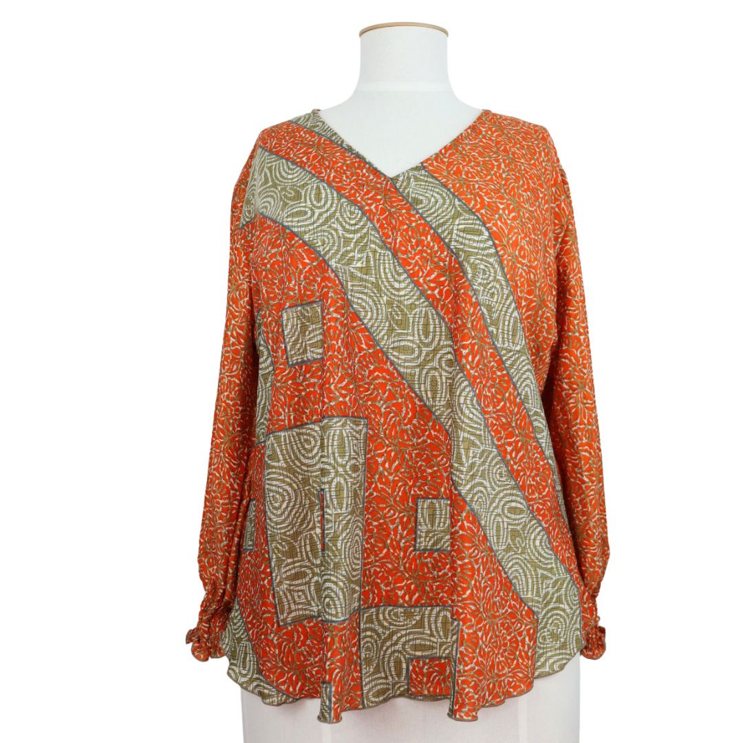 They are cut on the bias meaning they fall nicely across your chest and are very flattering. These tops are also made from recycled silk blend saris.