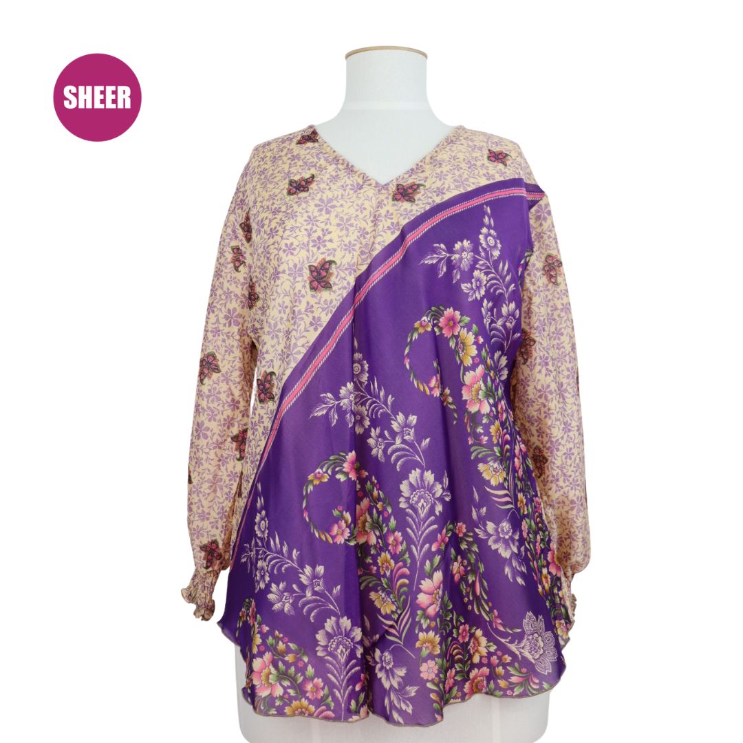 They are cut on the bias meaning they fall nicely across your chest and are very flattering. These tops are also made from recycled silk blend saris.