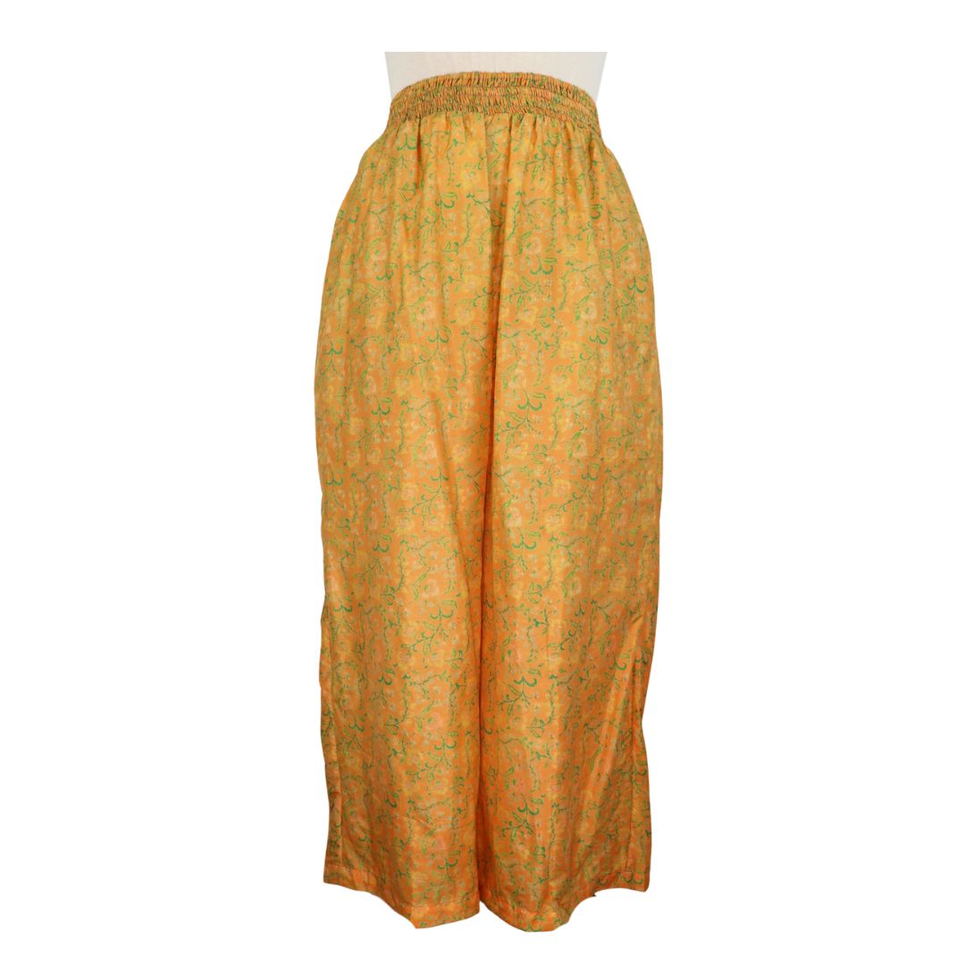 Traditionally Saris are often flamboyant and brightly coloured, frequently embroidered, and made from silk, cotton, or, in recent years, synthetic cloth such as viscose and polyester. We use retro Sari cloth in the majority of our garments so silk is a high component. It is not uncommon to find chiffon or georgette added into the mix which is why we refer to the skirts as a silk blend. We also use 'end of roll' sari fabrics.