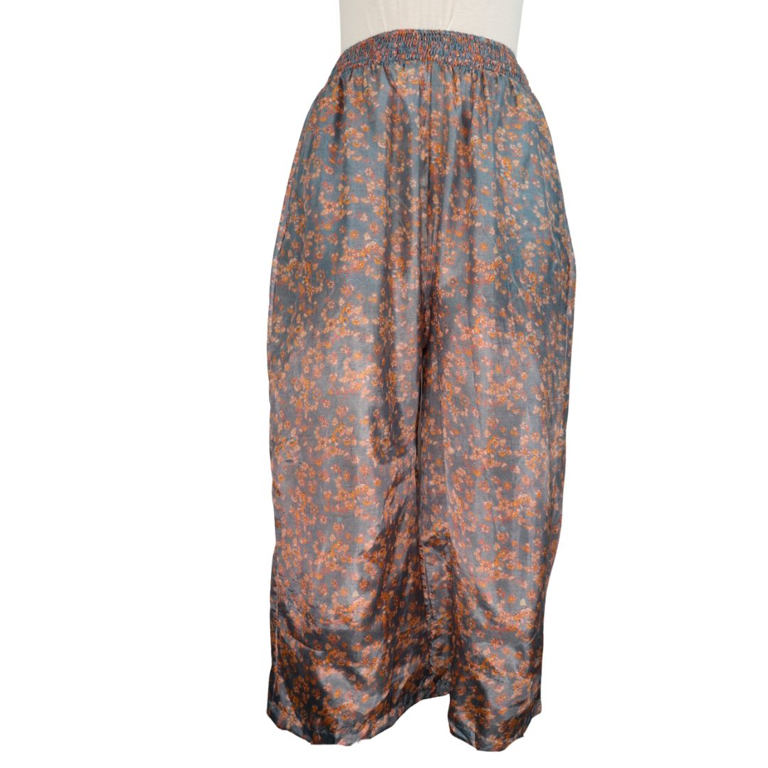 Traditionally Saris are often flamboyant and brightly coloured, frequently embroidered, and made from silk, cotton, or, in recent years, synthetic cloth such as viscose and polyester. We use retro Sari cloth in the majority of our garments so silk is a high component. It is not uncommon to find chiffon or georgette added into the mix which is why we refer to the skirts as a silk blend. We also use 'end of roll' sari fabrics.
