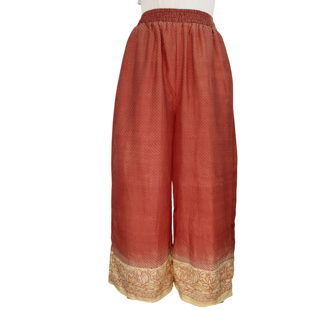 Traditionally Saris are often flamboyant and brightly coloured, frequently embroidered, and made from silk, cotton, or, in recent years, synthetic cloth such as viscose and polyester. We use retro Sari cloth in the majority of our garments so silk is a high component. It is not uncommon to find chiffon or georgette added into the mix which is why we refer to the skirts as a silk blend. We also use 'end of roll' sari fabrics.