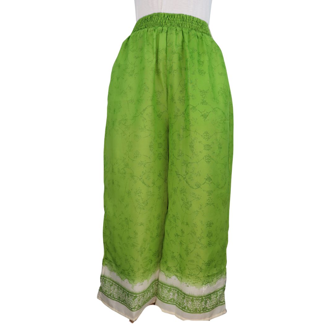 Traditionally Saris are often flamboyant and brightly coloured, frequently embroidered, and made from silk, cotton, or, in recent years, synthetic cloth such as viscose and polyester. We use retro Sari cloth in the majority of our garments so silk is a high component. It is not uncommon to find chiffon or georgette added into the mix which is why we refer to the skirts as a silk blend. We also use 'end of roll' sari fabrics.