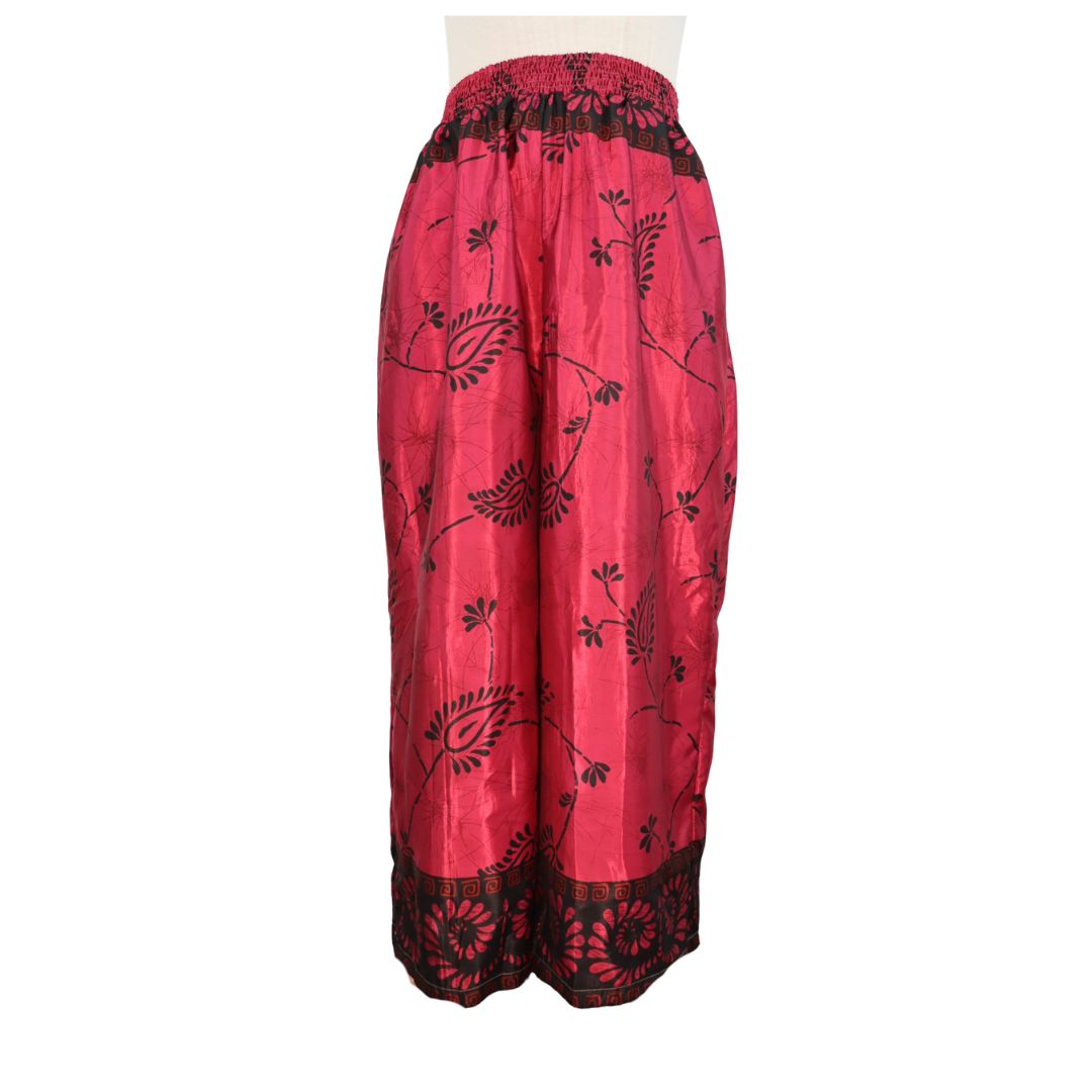 Traditionally Saris are often flamboyant and brightly coloured, frequently embroidered, and made from silk, cotton, or, in recent years, synthetic cloth such as viscose and polyester. We use retro Sari cloth in the majority of our garments so silk is a high component. It is not uncommon to find chiffon or georgette added into the mix which is why we refer to the skirts as a silk blend. We also use 'end of roll' sari fabrics.