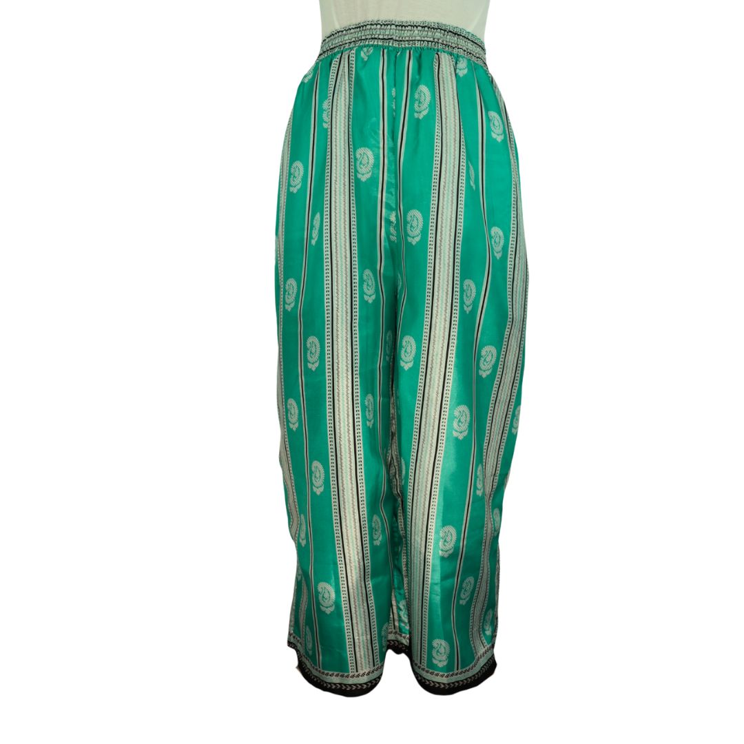 Traditionally Saris are often flamboyant and brightly coloured, frequently embroidered, and made from silk, cotton, or, in recent years, synthetic cloth such as viscose and polyester. We use retro Sari cloth in the majority of our garments so silk is a high component. It is not uncommon to find chiffon or georgette added into the mix which is why we refer to the skirts as a silk blend. We also use 'end of roll' sari fabrics.