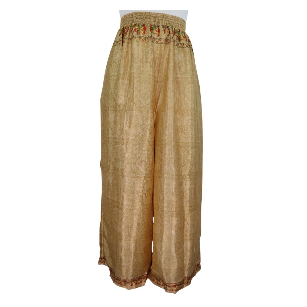 Traditionally Saris are often flamboyant and brightly coloured, frequently embroidered, and made from silk, cotton, or, in recent years, synthetic cloth such as viscose and polyester. We use retro Sari cloth in the majority of our garments so silk is a high component. It is not uncommon to find chiffon or georgette added into the mix which is why we refer to the skirts as a silk blend. We also use 'end of roll' sari fabrics.