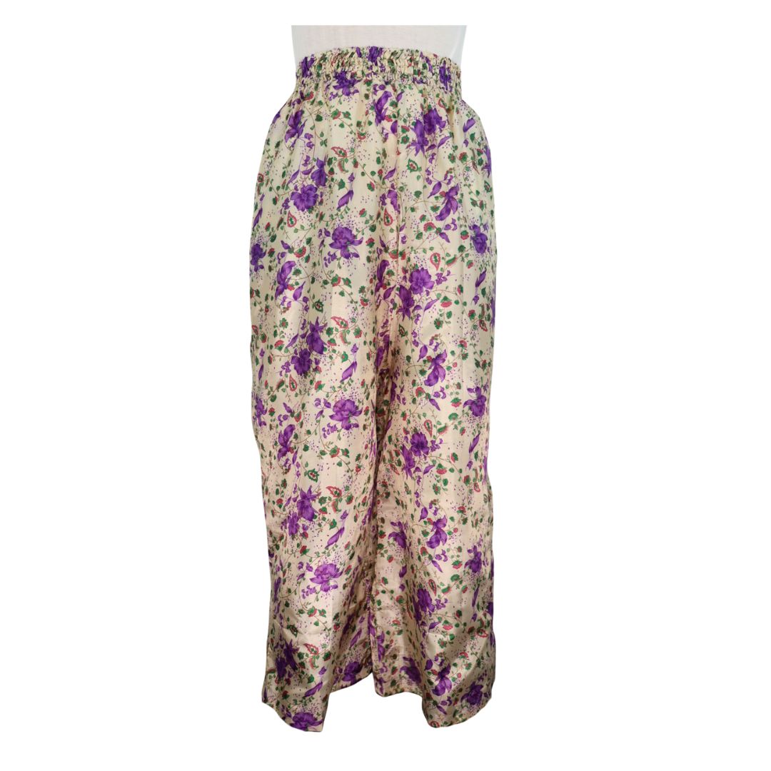 Traditionally Saris are often flamboyant and brightly coloured, frequently embroidered, and made from silk, cotton, or, in recent years, synthetic cloth such as viscose and polyester. We use retro Sari cloth in the majority of our garments so silk is a high component. It is not uncommon to find chiffon or georgette added into the mix which is why we refer to the skirts as a silk blend. We also use 'end of roll' sari fabrics.