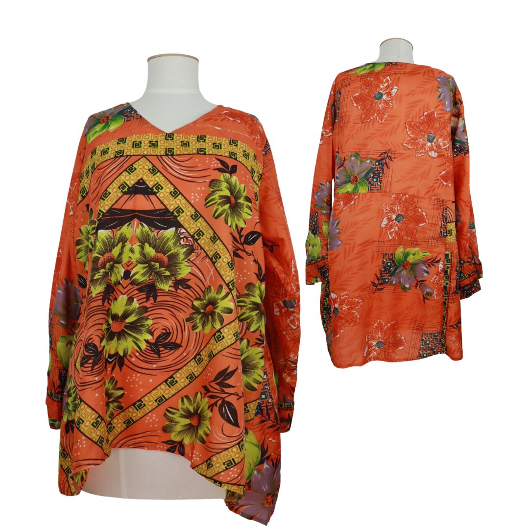 Lovely print and colour, great with palazzo pants or could be a beach cover up top, very versatile. Very comfy