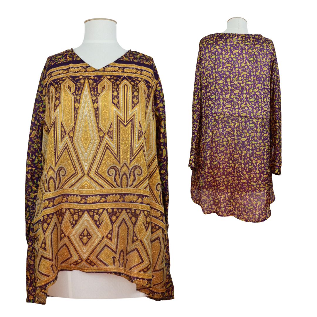 Lovely print and colour, great with palazzo pants or could be a beach cover up top, very versatile. Very comfy