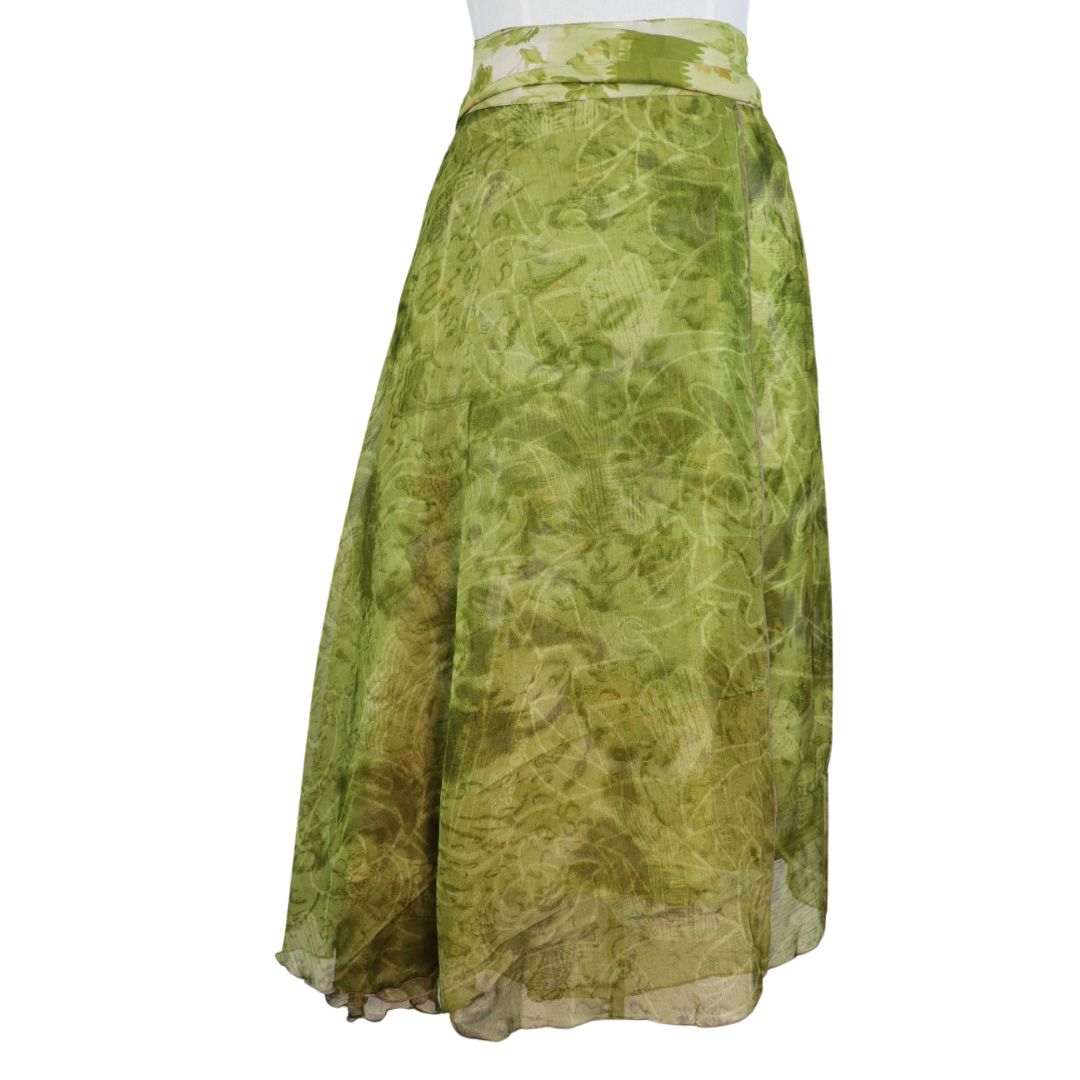 Since the pattern positioning on each skirt varies, you can wrap to either side, the front or back. The tie fastening allows flexibility around the waist and can also be tied to the front, back or side - your choice. The photo shows both sides of the skirt.