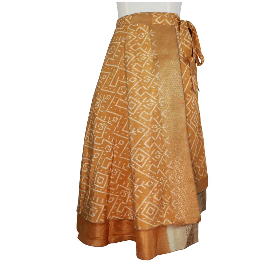 Traditionally Saris are often flamboyant and brightly coloured, frequently embroidered, and made from silk, cotton, or, in recent years, synthetic cloth such as viscose and polyester. We use retro Sari cloth in the majority of our garments so silk is a high component. It is not uncommon to find chiffon or georgette added into the mix which is why we refer to the skirts as a silk blend. We also use 'end of roll' sari fabrics.