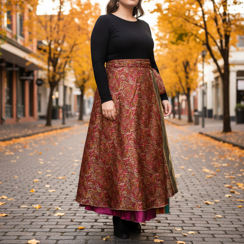 These silk wrap-around skirts are excellent. The length it ideal for me. The patterns are lovely.