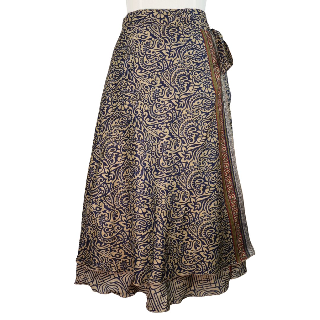 These silk wrap-around skirts are excellent. The length it ideal for me. The patterns are lovely.